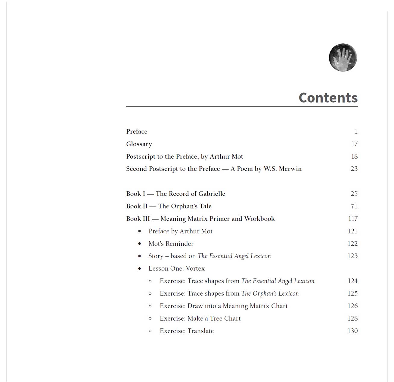 The meaning matrix that becomes the language of the story is presented in the preface for each of the first two books within the book – The Record of Gabrielle and The Orphan’s Tale.